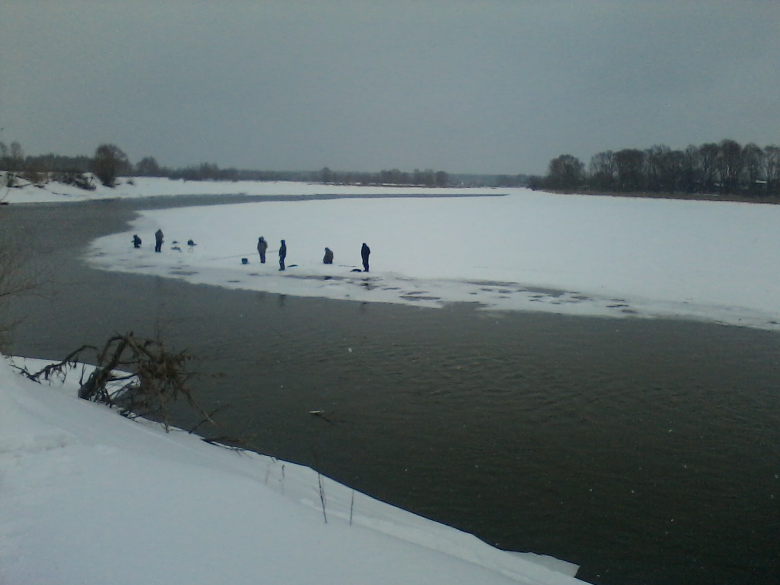 Вчера, 23.02. Свияга. Сел на хвост к товарищам, которые решили половить беляшку. С утра проехали до самого острова-града. В полутора км от берега просматривалась кучка рыбаков и мы двинулись туда. На месте обнаружили множество старых лунок. Позже выяснилось, что вчера и позавчера ловили бель, и пару раз наведывался судак. Глубина подо льдом от 40 см до 2-3метров. Просидели до 10 часов. Видели несколько сорожек и пару судачков у соседей. А у нас ни поклёвки... Было решено кардинально поменять место дислокации. Поехали к мосту.На месте обнаружили, что китай переехал на Свиягу