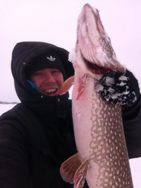 .Началось монотонное вываживание - постепенное стравливание и подтягивание лески. Подвел к нижнему краю лунки, но никак не мог протащить дальше. После нескольких попыток вижу долгожданную пасть, жертвую пальцами и вытаскиваю эту красавицу на лед. Взяла на Раптор. Рыбалка удалась, котлеты получились шикарные