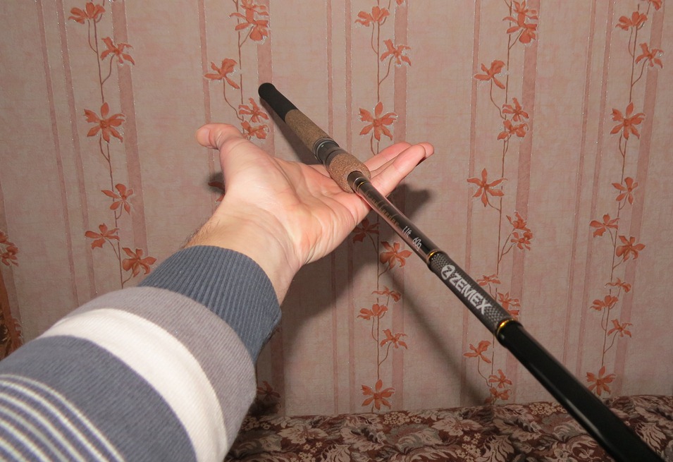 Быстро пролетаю расстояние от парковки до стенда с Земексами. Ну говорю, вернулся , давай будем выбирать и думать. А Азат прям с полоборота берёт и предлагает мне посмотреть ГрандФидер . И показывает три удилища. Так они же стоят за десятку , не потяну пока. Тот хитро улыбается и начинает делать перерасчёт . сумма прозвучавшая в итоге, делает своё дело и ...Ммм,солидный прикид , беру в руки за крупно-сегментную пробку , рукоять и поднимаю ввысь , оглядывая лайтик. Тоже 330/ 60 гр. Но уже ощущения иные , а именно бланк строже , наполнен силой и мощью ,что говорит о том ,что бросать должен и не близко для такого росточка , да рыбу держать в напряге будет , а не выгибаться ужом. Что подтверждает Азат , 30-35 м в точку , совсем легко. А мне это и нужно. При хлёстком движении , ток по руке не бежит ,но вершинки такие же тонюсенькие сверху. Такая же окраска ,что и у ХайПро , на глаз диаметр комельной части 2.1-2.2 мм . Колечки небольшие , лёгкие , не под шок-лидер . Начинаю осмотр пристрастный , ибо это ещё более интересный вариант для моего поиска сазана/карпа