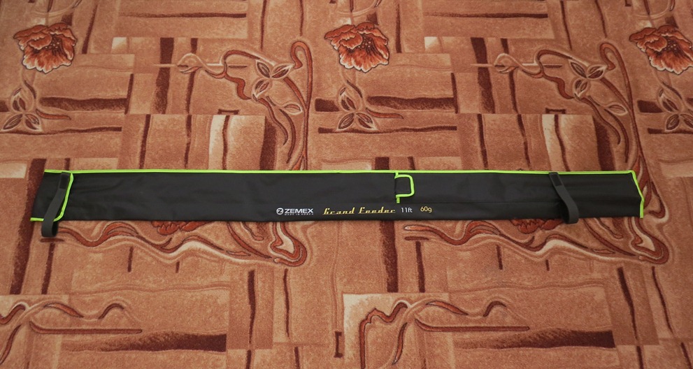 В чехле ,длина достигает 156 см. Чехол с пропиткой , похоже, маслянистый на ощупь , чем то напоминает углеволоконную ткань . Фиксаторы из материала, а ля пенка с липучками на концах.
