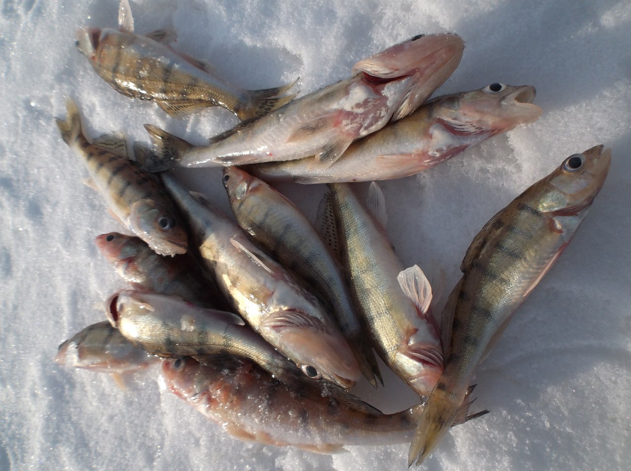 Отчет за субботу.Куйбышевское водохранилище.Глубины до 15 метров.С утра не очень активные поклевки берша и некрупного судачка.Приходилось часто бурить лунки в поисках удачи,толщина ледяного покрова