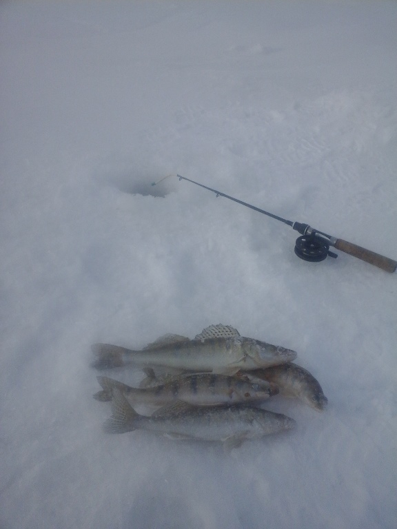 Вчера Затон. Очень трудовая рыбалка, пробуренно штук 40-50 лунок.Глубина ловли 13-17 метров Утром два судачка грамм по 700 и один берш на грамм 500.После обеда еще два таких же судачка и с пяток хороших сходов.Позже выяснилось причиной сходов был погнутый кончик тройника