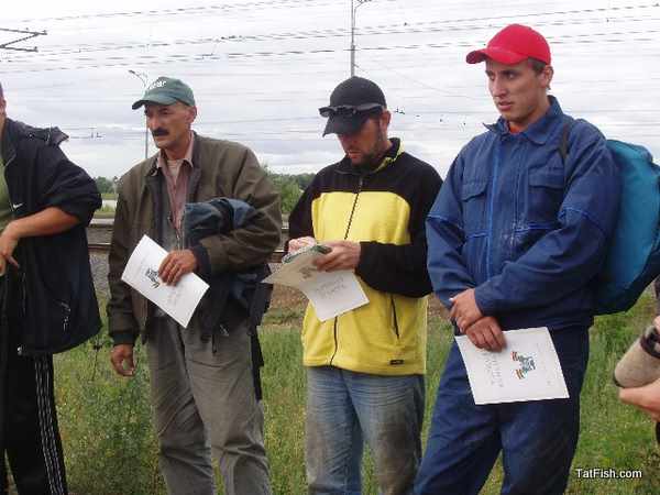 Зона на второй тур была разбита на «меляке». Как по заказу мы втроем попадаем в сектора 1,2,3. На 13метрах от берега глубина в зоне варьировалась от 70см до 1,3метров. Лишь в 30 метрах от берега глубина опускалась с 1,8 до 2 метров. Именно там я и решил сделать «стол», т.е. 70 процентов моего первоначально приготовленного прикорма я забросил в эту точку. А затем лишь докармливал из рогатки раз в 5-7 минут. Старт. Минут 5-10 у всех тишина. Затем кто то ловит мелкого ерша, потом еще. Я уже начинаю волноваться.… Но вот, наконец то поплавок скрывается под водой, есть первый подлещик. Да еще какой! Грамм на триста! Сразу же закармливаю точку, постепенно клев улучшается. Зуфар, глядя на меня, тоже переходит на «дальник». Чувствую, что скорость у нас примерно одинаковая. Клюют те же сеньчики по 30-60 грамм. Но он ведь позже начал их ловить, хотя у него есть гандикап с первого тура в 200грам. Но вот у меня при очередной поклевке чувствуется кто то посолиднее. Фрикцион потрескивает. Но «пробуксировав» неплохого леща, я получаю обидный сход. Тут же перезаброс, и точно такая же поклевка. Но, увы, картина повторяется один в один. Два бонуса упущены, оставив мне на память полный поводок соплей, а Зуфар, тем временем, набирает обороты, не собираясь сдаваться. Я предполагал, что после двух «хороших» сходов, да еще почти на прикормке клев ухудшится. Но, как ни странно, никаких разительных перемен в клеве я не заметил. И вот долгожданный свисток. Сомнений нет, либо я, либо Зуфар. В итоге у меня 2245грамм, у Маликова Зуфара - 1935грамм. Третий Гарипов Олег – 1075грамм. У меня и Зуфара сумма мест 3, но по общему весу я его обошел таки на 110 грамм. В итоге 1 место у меня, 2е – Маликов Зуфар, 3е – Гарипов Олег.