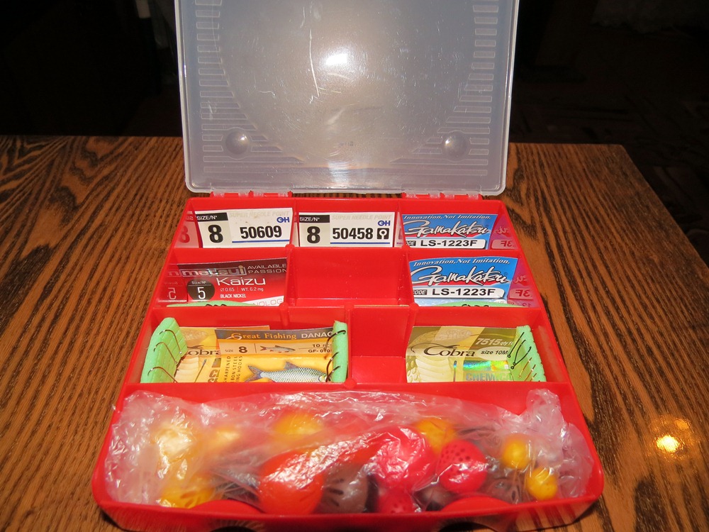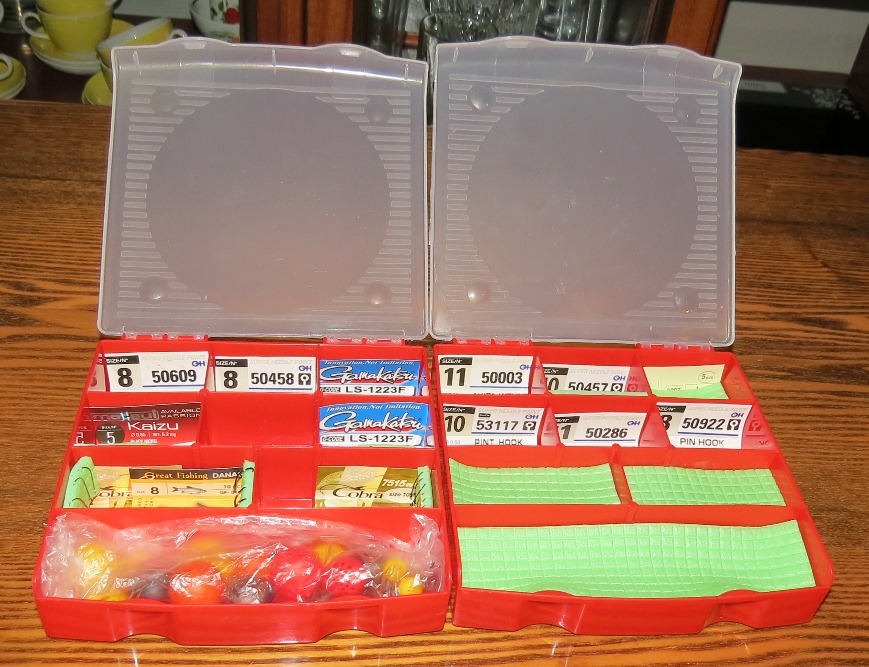 Идя по торговому комплексу , вспомнил ,что давно хотелось все крючки и мелочь разложить по ящичкам - отсекам , чтобы оперативно можно было достать любой крючок , не муслявя ,не всегда чистыми и сухими пальчиками клеёные упаковки - блистеры. И чтобы ветер не сдувал всё это ...шёл , шёл и набрёл , присмотрел компактные контейнеры , для хоз. нужд. А под вечер заморочился и вот ,что часа полтора тому назад родилось . Этикетки крючков плотно в ёмкостях , вырезал из пенки - вставки , в них вдел крючки . Мелочь ( матчевые клипсы на бусинках, к примеру) - закрыл крышечками , чтобы не летали внутри . Получилось удобно , компактно и можно менять оперативно , готовясь на определённую рыбалку , составы крючков . Органайзер готов и уже не нужно обсуждать , кто делает лучшие упаковки для крючков )) . Цена вопроса : 2 х 54 руб . + кусочек пенки + часочек неспешной работы.