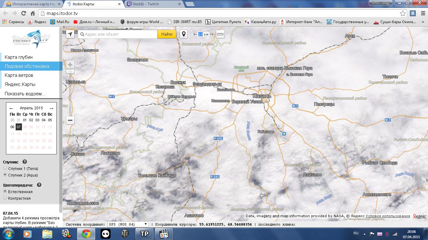 Правда тут есть один нюанс, если день облачный, то на спутниковом снимке трудно рассмотреть ледовую обстановку. Поэтому в календаре нужно найти день, когда небо было ясное.