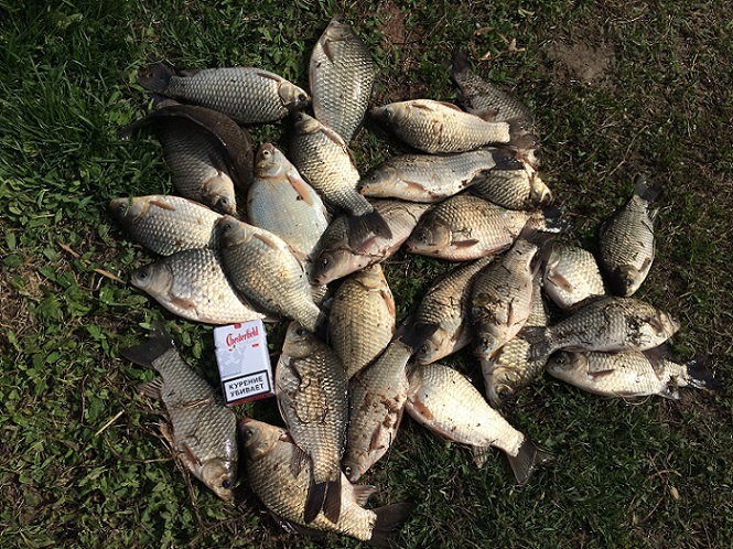 на двоих с напарником наловили около 20 кг. Часть рыбки прихватили, остальное вернули реке