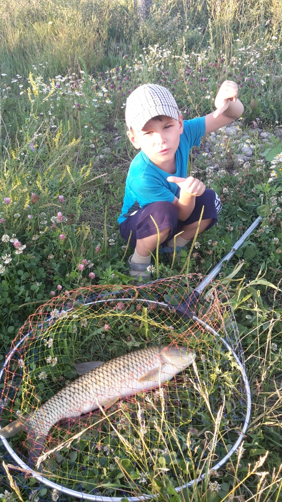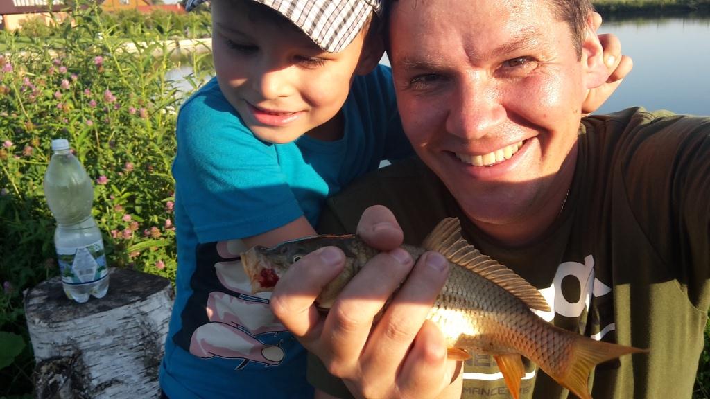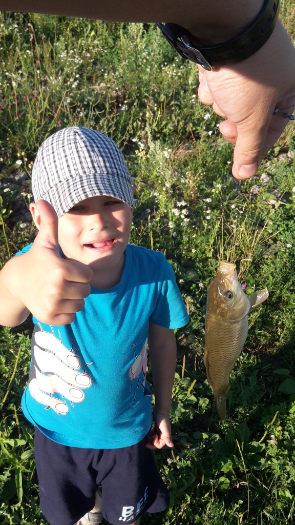 После небольшой фотосессии учил отпускать рыбу. Со словами: "иди рыбка домой", та отправлялась броском обратно в водоем.