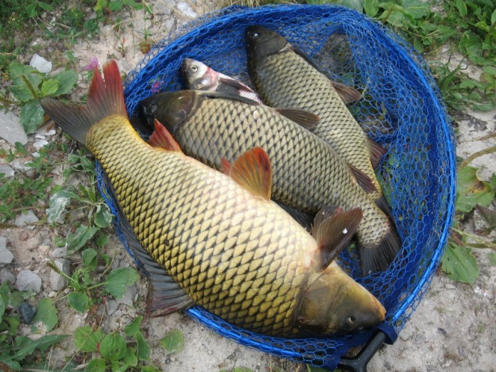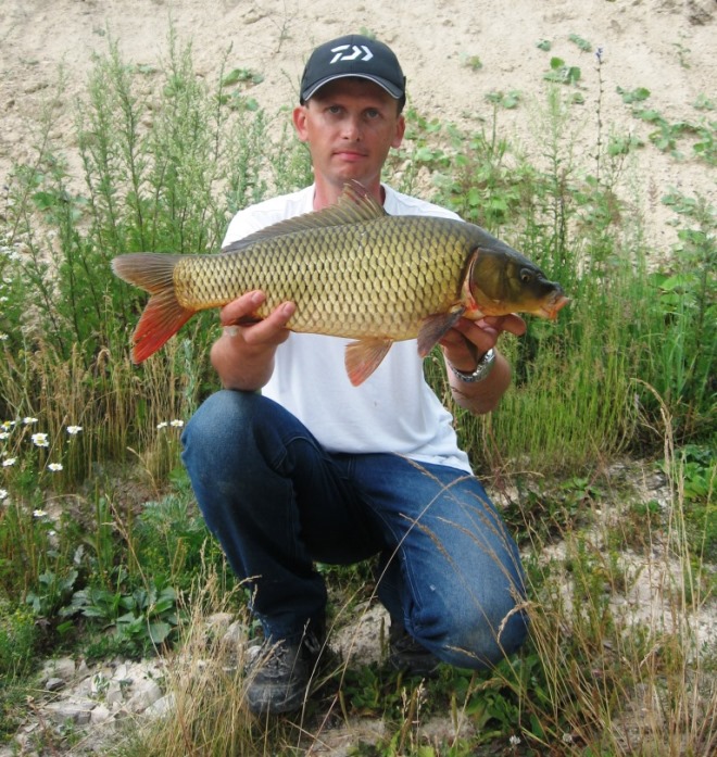 Наживка вскоре заинтересовала рыбу – мощная потяжка приводит к обрыву поводка на поклевке. Это становится интересно. Через пару минут вновь вершинка ходит ходуном – подсекаю, начинаю вываживание, но видимо слишком поспешно – и опять происходит обрыв. То, что происходило далее – можно назвать торжеством природы над человеком – в течение следующих 20 минут я поимел еще 4 схода – два с обрывами поводка, один с разгибом крючка и еще одну рыбину я опять позорно слил на вываживании. Так я испорчу настроение не только себе, но и напрочь «выключу» прикормленную точку. Чертыхаясь про себя, ставлю самые толстые поводки из имеющихся в наличии – 0,20мм, дополняю оснастку вставкой фидергама и растормаживаю фрикцион после заброса. Только после этого мне удалось комфортно доловить оставшуюся на точке рыбу. Подряд ловлю 3 прекрасных сазанчиков, причем при извлечении крючка из пасти одной из рыбин с удивлением извлекаю сразу два крючка – один с оборванным получасом раньше поводком (не поленился достать – это точно был мой крючок). Всегда считал сазана достаточно осторожной рыбой – не знаю, что заставило только что побывавшую на крючке рыбину через некоторое время снова заглотить наживку. Итог рыбалки – 6:3 не в пользу рыболова, но даже такой результат, учитывая невыразительную активность рыбы на водоемах, можно назвать вполне удовлетворительным.