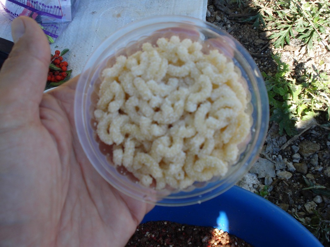 На опарик с червём поклёвывал бычок. На 3 кукурузки умудрилась попасться жирненькая плотвица. Вот пожалуй и всё о рыбе. Ароматика не работала.