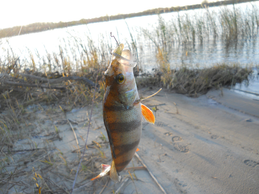 В 15.00 обнаружил интересную яму. Поставил отводной поводок + лакки джон S-Shad 2,8". И начались, наконец, долгожданные поклевки! Поймал окуня, полюбовался и отпустил! Можно было еще, но ... подошло время ехать домой. Рыбалкой доволен.