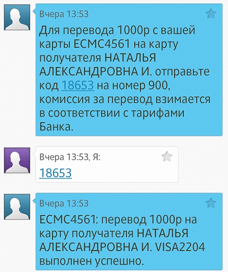 Потом приходит смс-ка с кодом для подтверждения операции ( см.фото 2 )