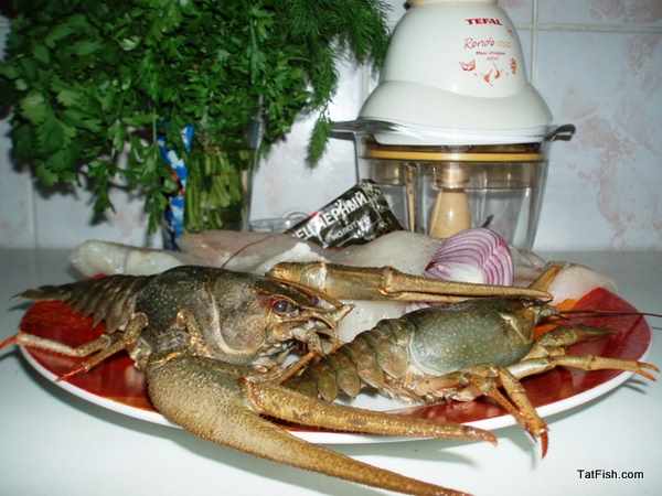 Итак, собравшись с кулинарным духом и заимев одного двух раков и филе килограммового судака (щуки, сазана и т.п.) попробуем осуществить задуманное. Варим минут 40 бульон из голов, хребтов, хвостов или мелкой рыбы, в общем, что есть, но только не используем головы сазана и карасей, так как бульон будет горчить. Тем временем, предварительно усыпив и хорошенько промыв в проточной воде, подготовим раков, отделив хвост, клешни и лапки от туловища. Лапки за исключением клешней лучше сразу бросить в бульон и кипятить вместе с хвостами-головами. Нам понадобятся панцири, а для того, что бы было проще их очистить, взяв тушки за усы, ошпариваем их кипятком из чайника или опускаем ненадолго в кипящую воду. Мясо из хвоста извлекаем не ошпаривая. Панцири оставляем с усами, либо удаляем «усатый шлем» если среди предполагаемых дегустаторов нашего блюда будут трусишки, которые боятся всего усато-лапо-хвостого.