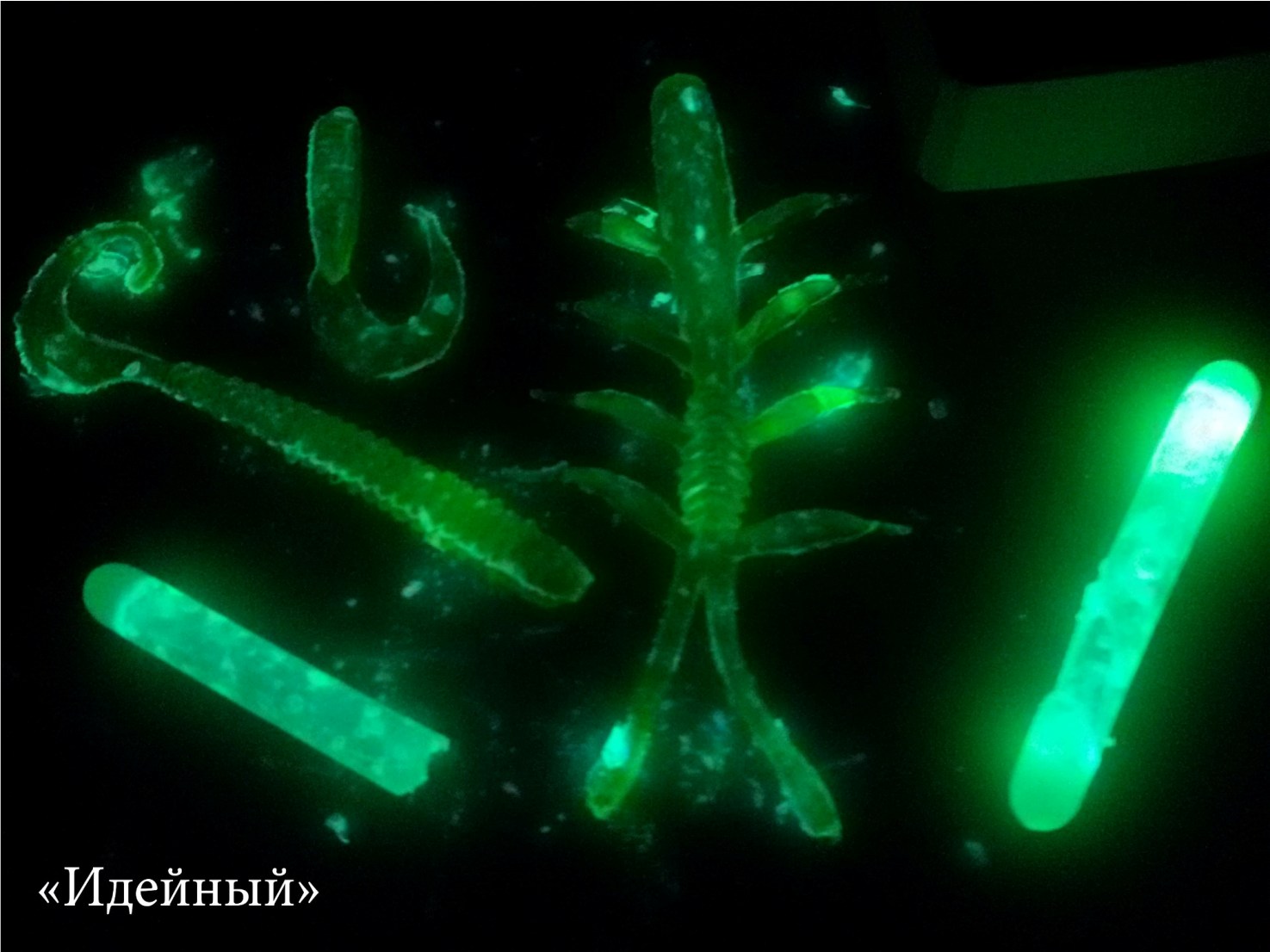 она светилась. Решил ее закачать в силиконовую приманку с помощью шприца.
