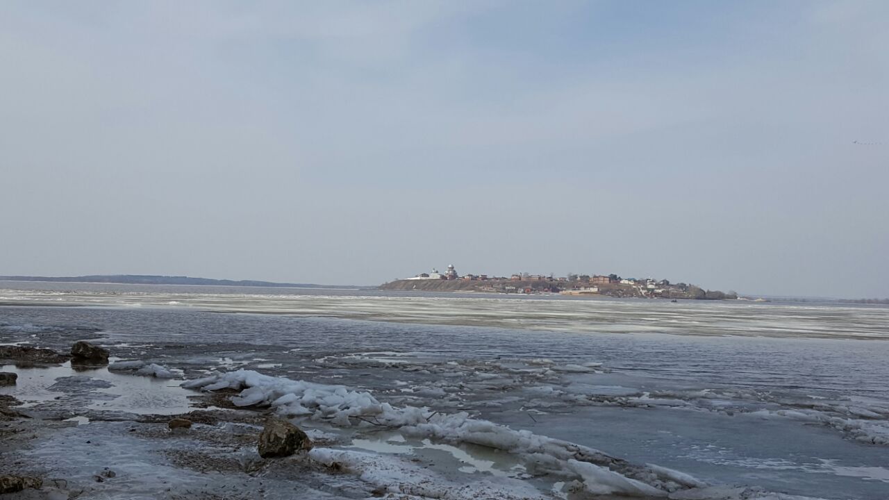 А когда выходил на берег между льдом и берегом было вот такая промоина