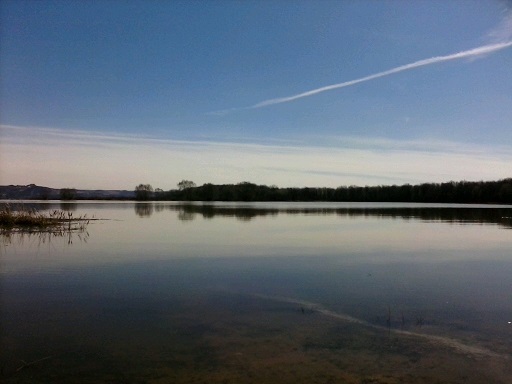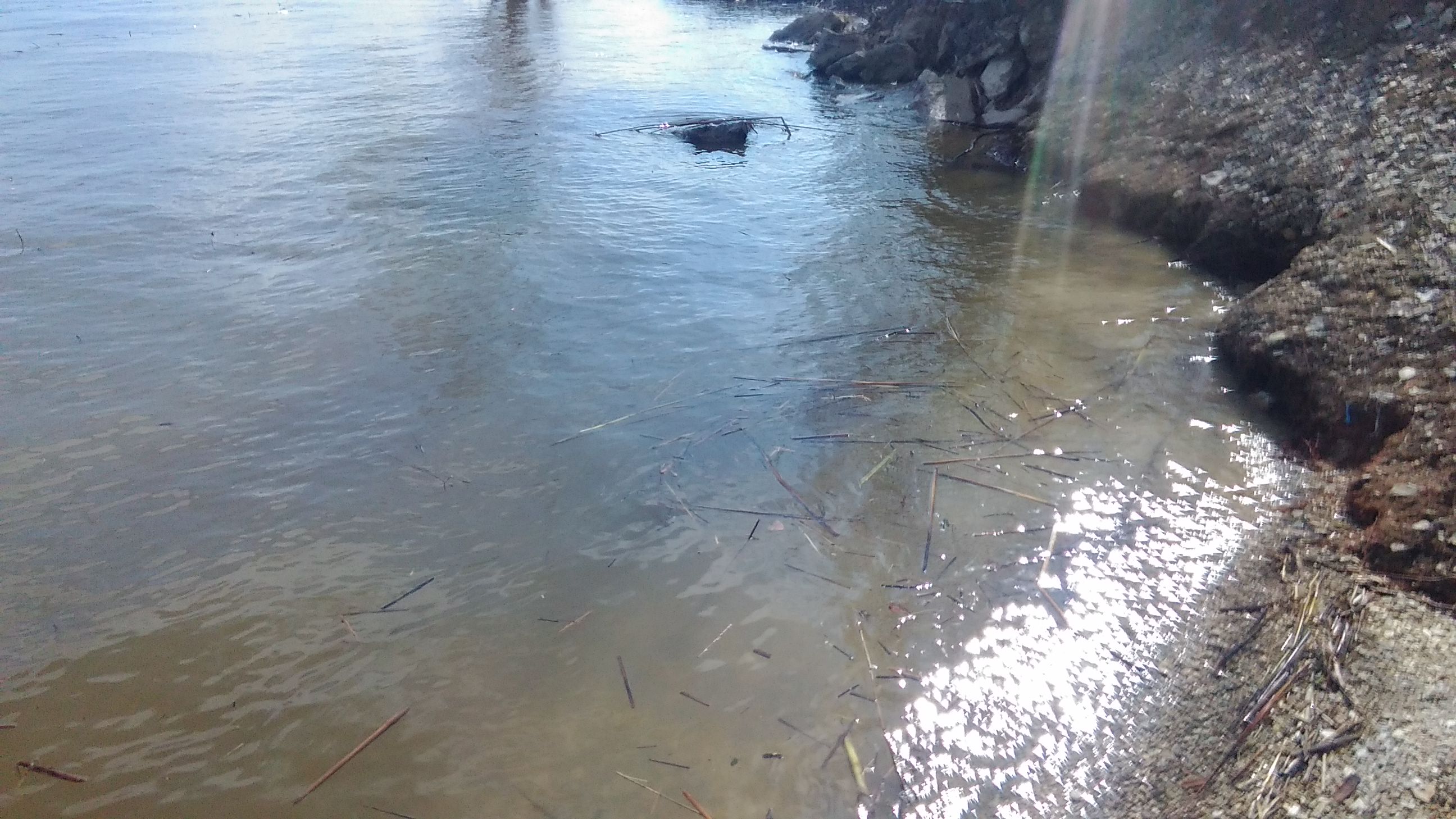 Залив возле Нармонки. Подъехал к 8ч. Ветер юго-восточный. На берегу никого, вода - кофе с молоком. Постоял, послушал - тишина, ни всплеска, ни "чавка". Ну ладно, выбрал местечко, расположился. До 10ч - одна явная поклёвка на червя и одно подобие... Пошёл гулять по берегу, пробуя то тут, то там. В одном месте, метрах в 20 от меня, возле самого берега, в траве, кто-то начал возиться. Размер вроде приличный, плавник спинной немаленький... Думаю, сазанчик. Чтобы подкрасться, надо обойти канаву - метров 200. Обошёл... Почти ползком подкрался... Видимо, плохо полз - заметили