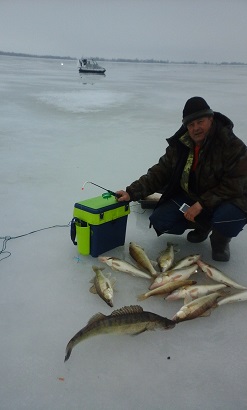 А вот по льду (конец марта) завершили нормально, судак на трёх метрах.Это улов товарища, у меня поменьше.