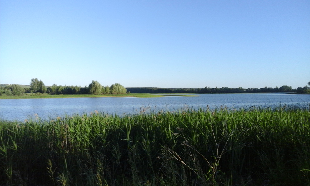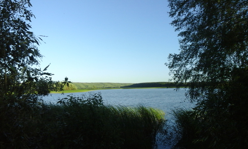 Деревенская речка. С вечера прокатился, посмотрел где-что-как... Определился с местом для утренней рыбалки. Полоса вдоль берега, заросшая кувшинками. Окно 1*1м. В двух метрах от берега. Глубина чуть выше колена... Утром поехал с расчётом на гибрида.