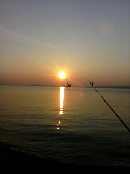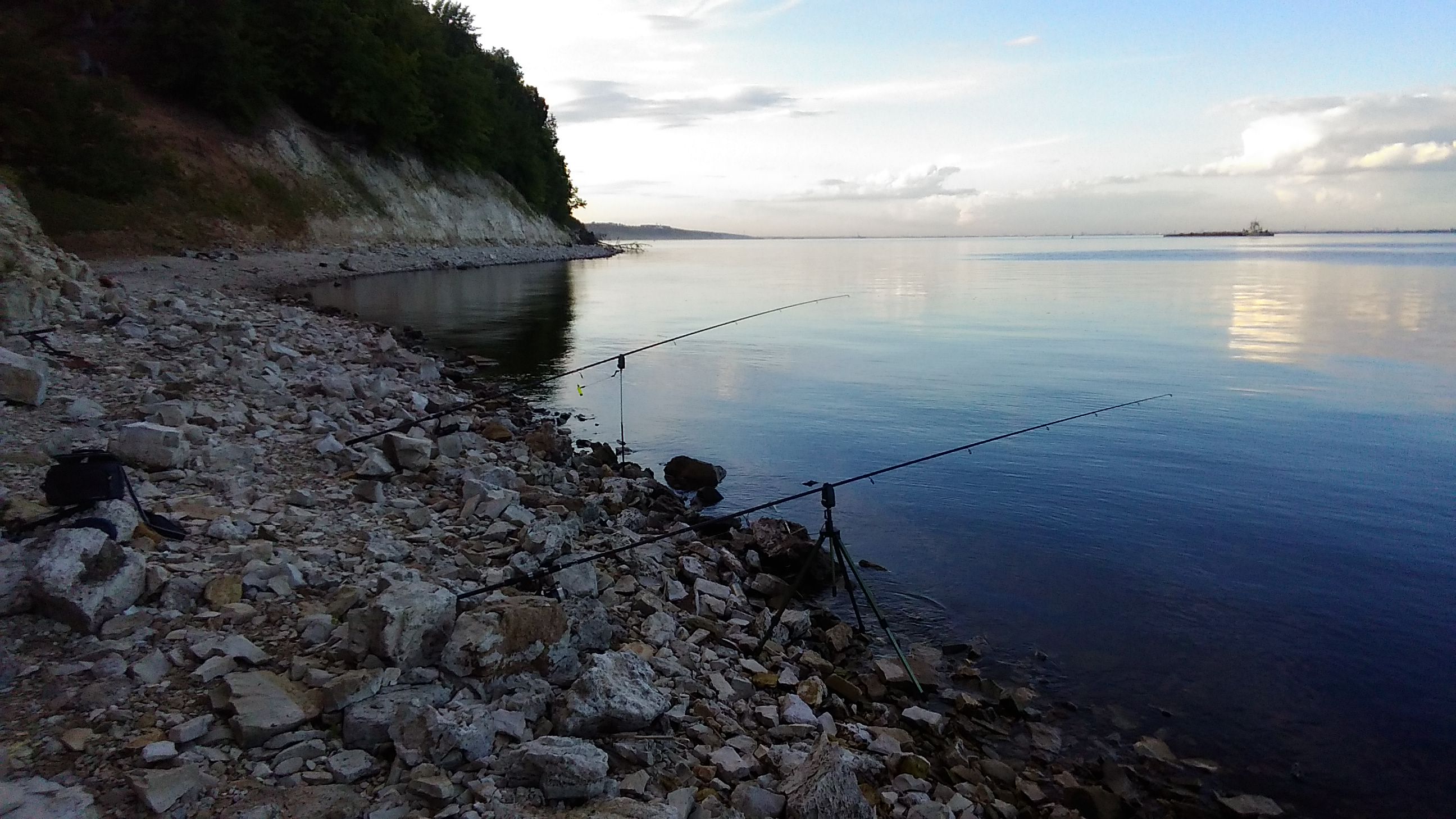 Сидеть на бетонке не захотелось, т.к. в нашем арсенале не было необходимого инвентаря для комфортного расположения, поэтому решено было идти на песок. Расчехлив снасти, первым делом я попытался пробить дно, что оказалось весьма нелегкой задачей при сильном лобовом ветре, кое как удалось нащупать более менее интересный участок на удалении порядка 40м от берега, с глубиной около 3 м., что то вроде приямка или канавки, теоретически , как раз туда должно намывать корм для мирной рыбы во время волнения..