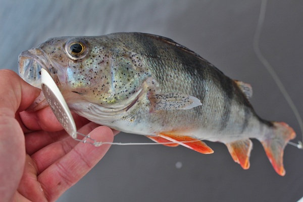 Что касается проводки, после заброса приманки нужно закрыть дужку катушки и убедиться, что леска попала в ролик катушки. Далее опустить кончик удилища ближе к воде перпендикулярно берегу, таким образом, чтобы между кончиком удилища и леской образовался угол 90 градусов. После чего можно начинать делать самую обычную равномерную проводку, регулируя скорость блесны вращением ручки катушки. Также, после заброса можно дать блесне немного заглубиться или опуститься на дно, после чего начинать равномерную проводку, регулируя горизонт облова кончиком удилища поднимая его чуть выше или ниже.  При ловле окуня, ни в коем случае не стоит делать резких подсечек удилищем. Честно говоря, при ловле окуня на «вертушки», его вообще лучше не подсекать, тройник у блесны «оголённый», и он сам хорошо и надёжно садится на крючок, а резкая подсечка только вырвет у него тройник из-за рта.