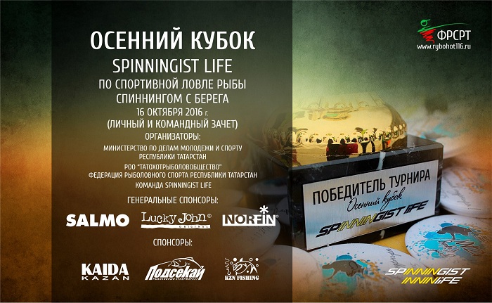 Положение о проведении “Осеннего Кубка SPINNINGIST LIFE” по спортивной ловле рыбы спиннингом с берега 16 октября 2016 г.