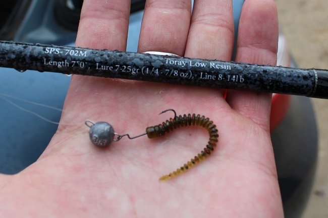 Первый тур я закрыл с нулем. Водоём не понял вообще! Во втором туре переход в зону Б, где после совещания с Маратом был определён наиболее перспективный участок, где у него за первый тур было 3!!! схода. После первой 45-ти минутки (именно столько длился каждый тур) стало понятно, что окунь держался на достаточном расстоянии от берега, недалеко от ближней бровки. Поэтому решение использовать 4 грамма пришло само собой! Одно-дюймовый Jacastik позволил занять первое место во втором туре в зоне Б с результатом 8 баллов! Марат завершил тур с нулём, что в принципе для зоны А было нормальным явлением. Однако ни меня, ни Марата это не оправдывало...кто-то же смог там поймать!