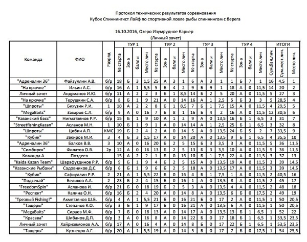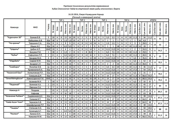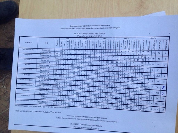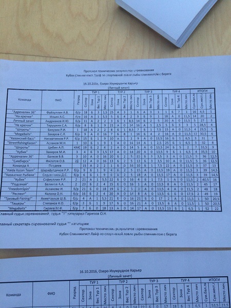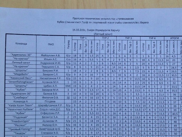 Все протоколы Осеннего Кубка "SPINNINGIST LIFE 2016".