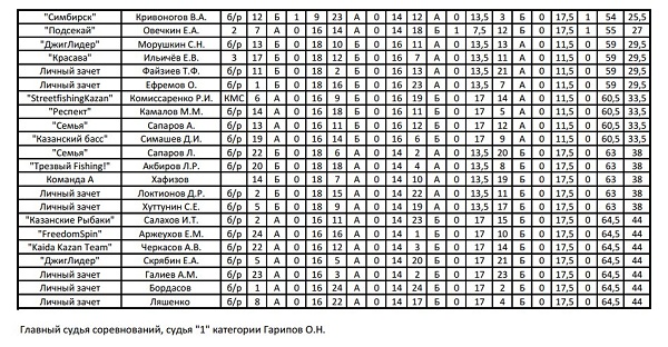 Огромную благодарность выражаю нашему президенту Федерации Рыболовного Спорта Олегу Гарипову, а так же незаменимому судье, который является действующим спортсменам, Роману Сморкалову. Отдельное спасибо Евгению Ильчёву за предоставленную воду и вкусные пирожки. Так же, выражаю свою благодарность Снежане Власовой, которая была на этом мероприятии в виде секретаря и Данилу Шибанову, который помогает всегда и во всём. И всем остальным помощникам: Рамилю Шарафутдинову и Ленару Акбирову, Человеческое Спасибо!
