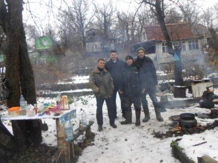Прибыли на место около 10 часов утра, смотрим, вроде сидят двое на льду, шелохнуться бояться ))). Кричу им с берега... так мол и так, салям рыбанутым!... аннан-маннан, тырсым-пытсым, как мол прошли? как лед? Отвечают что ходить вполне комфортно, но рыб клевать отказывается из-за слома погоды и резкого похолодания. Говорю им что надо бы Кикимру задобрить сальцом и стопочкой, а потом уже и у неё просить дары, а не так что пришли и нахрапом взяли сотню ротанов.