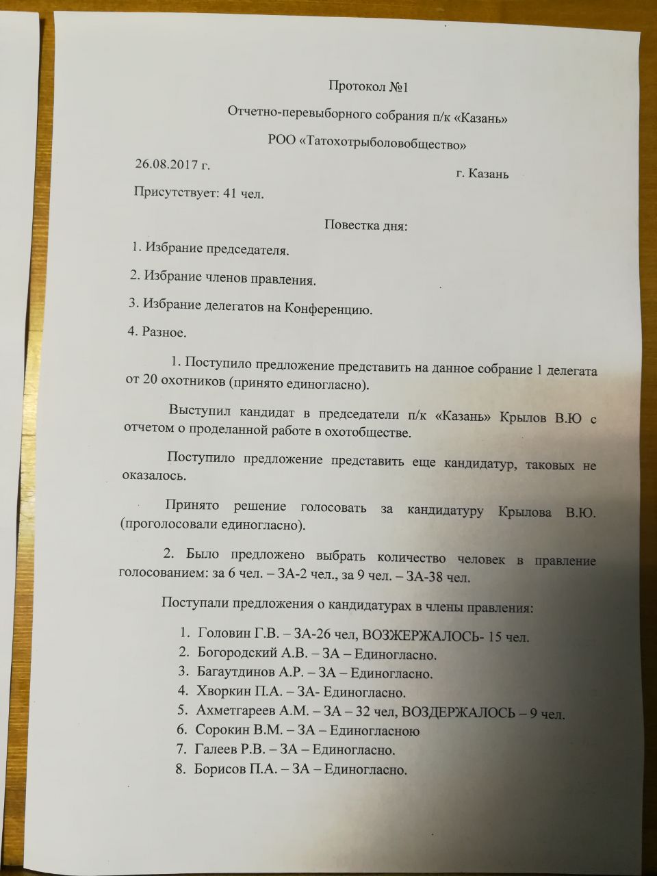 По итогам общего собрания 26.08.2017
