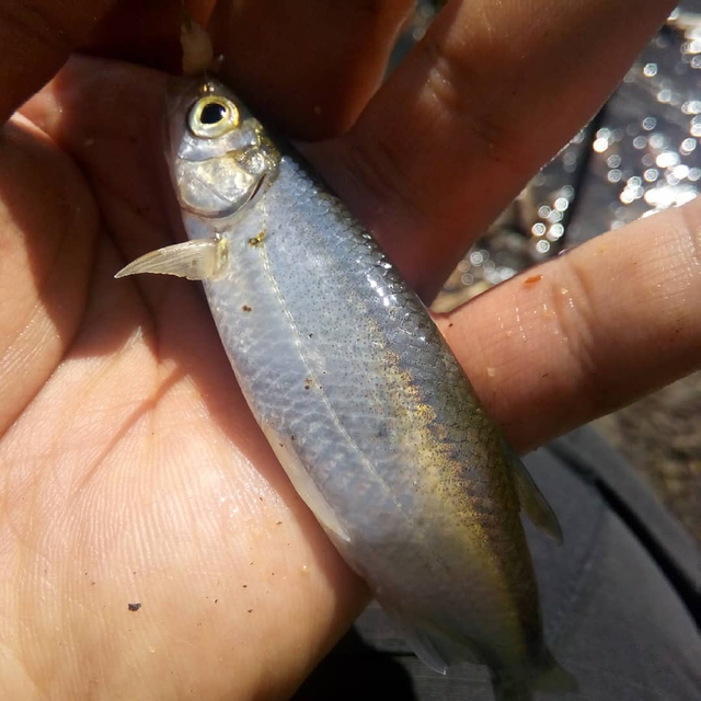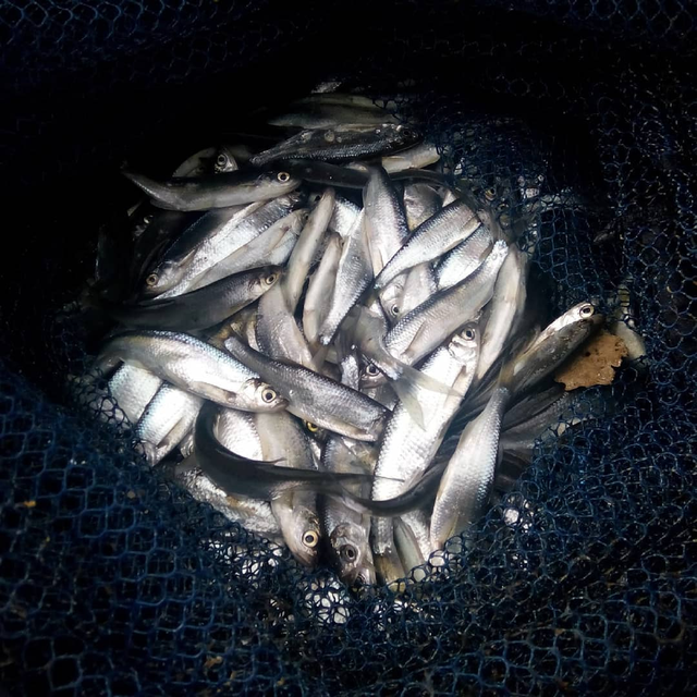 Рыбка обозначилась через пару часов, но не та, что в мечтах.. потому была возвращена обратно расти, опарышей обтрепывать да червей лохматить...