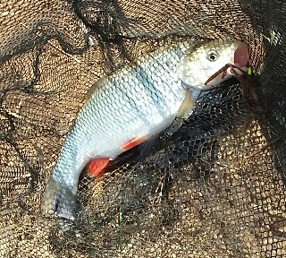 Голавль серьезного размера пожаловал в садок уже часам к трем.. а после тяга начала спадать, напала сорога.. весело сдирающая любую насадку с кривых крючков 4-6 номера как изголодавшийся по шашлыку народ с шампурчика.. но эту рыбешку мы будем ловить осенью..