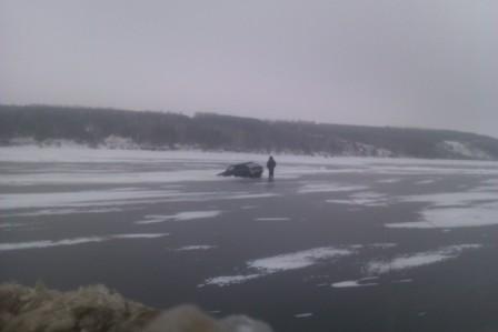 Первая шевик,вторая не понятно что за легковушка. В общем печалились они сегодня с самого утра там,помощь к обоим пришла только в районе двух часов.Как доставать будут не понятно.Поражаюсь народу на Каме еще полыньи имеются а они снегоходы вытащили и уже на машинах хотят пойти. видимо процесс жизни хотят ускорить . Чудаки-М......