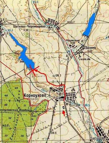 Едем в сторону Сорочьих гор. Поворот на лево на Рыбную слободу. Проезжаем Елги малые, большие, Сабакаево. Доезжаем до развязки. На право Масловка, А НАМ НА ЛЕВО В КОРНОУХОВО! Основная проблема озеро найти от деревни. Так что по карте.