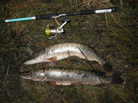 Сезон открытой воды пока не закрыл. Позавчера ближе к вечеру клевала щучка. Удалось выудить две штуки.