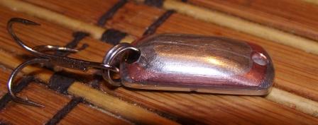 так как я ловлю только на блесну с тройником, не задумываясь поставил среднюю блесну, но тройник надо побольше 4 номер. Блесна супер уловистая, особенно когда ведешь вверх, ступенькой по 10-15см. Если поднял на 50-60см и нет поклевки, скидываешь обратно ступенькой, вниз дошел, качнул пару раз и жесткий удар!proxor писал(а):Хотелось бы услышать мнение по поводу след.изделий: