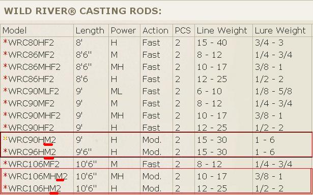 ( W - Wild river, S\C - spinning\casting , 80 - рост,  H - Heavy\тяжелый, F - Fast, 2- 2-х частник  = WS\C80HF2) . В старых бланках просто она тяжёлая и в динамике  шланговатая... Но в статике как и положено - чистый фаст   Кстати в новых бланках Речка ощутимее суше, легче и в динамике быстрее .