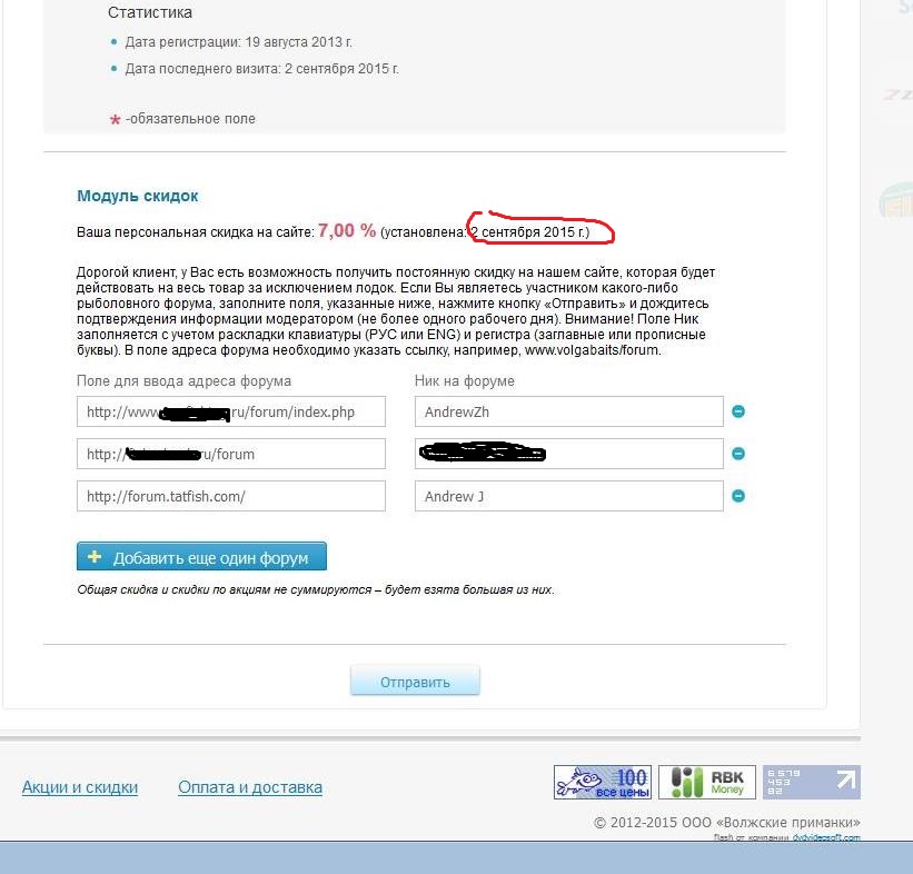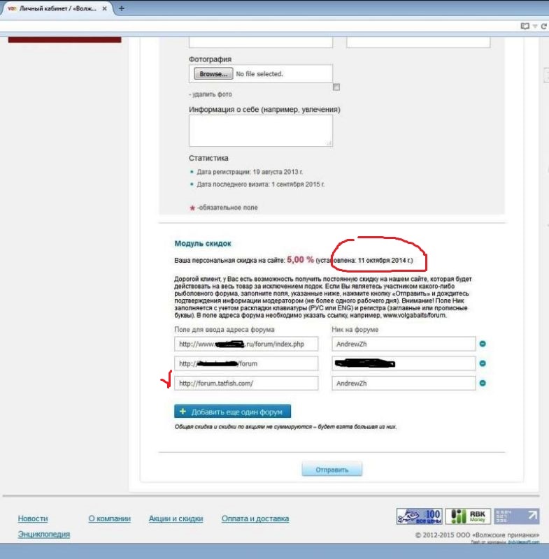 Я регистрировался(записывался в очередь на Shad Jigger 245 за 8000руб, когда ажиотаж был, но, так и не взял, когда в продажу поступили, хотя в руках даную модель держал - не торкнуло, посчитал, что дорого за бланк из корейского материала IM9 (скорее всего с завода "N.S.") и кольца SiC по N.G.C.) и указал форумы раньше, чем проводилась рекламация на сайте TatFish.com. Видимо, надо было удалить и заново указать форум tatfish в то время, впрочем, не знаю...ramtat писал(а):Андрей, про скидку: когда реклама шла на Татфише, сразу и зарегился на ВолгаБайтс, там сразу:ваша скидка 10%/Как то так.
