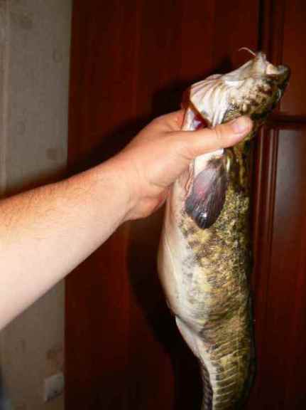 бегу на поклевку пустой. Катуха бешенно вращается... Подсекаю, большая. К лунке подвел, а заходить в лунку не хочет! Еще и крутится как веретено! Шнур выдержит, поводок тоже, а вертлюжок? Поленился поменять. Эх мля... руку в лунку.. нащупал морду, жабры, челюсть, пасть приоткрыта... На прошлой недели прокатило