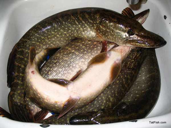 Там двое ребят на моторке с фарватера пришли, у них одна щучка на 4,5-5,0 кг, один карандаш и судачок на 25 см.