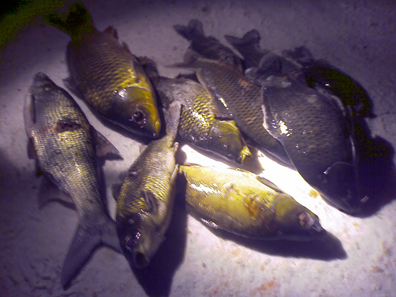 Итог: 2 карпа по 2,5 кг и несколько белых рыбок по 300 гр.