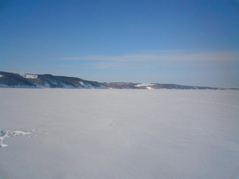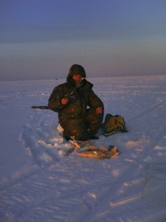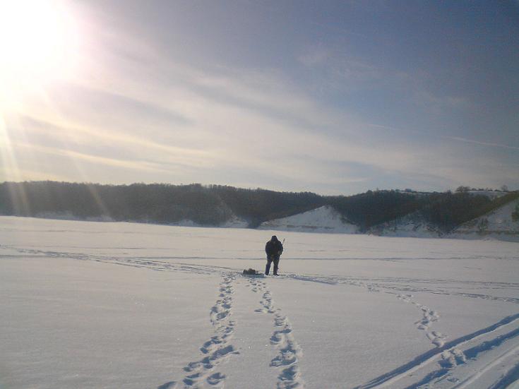Сегодня, 14.02.2010 г. Волга, Б. МАтюшино. Очень холодно. -17 и ветер пронизывающий. В 12.00 боле-менее потеплело. Клев вялый. Редкий. Было два хороших удара. Оба при первом опускании в новую лунку. По этой причине и из-за холода сигнал от мозга до руки шел долго, рыб, может судак, соображал быстрее. Сломанный стопор обратного хода на очередной дешевой 30-ти рублевой катушке окончательно сподвиг меня на завтрашнюю(или в ближайшее время) покупку хорошей. Народу - НИКОГО ДО ГОРИЗОНТА ВО ВСЕ СТОРОНЫ.