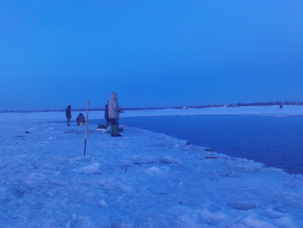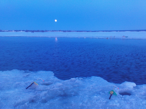 Вчера против Камского,глубина 10-15 метров.С утра поклёвывал судачёк,у кого-то лучше у кого-то хуже,но стабильно. В 9.00 поднялся ветер,да такой что лишний раз закурить влом было.Снесло ветровое стекло у снежика. Помучавшись ещё час решили свалить