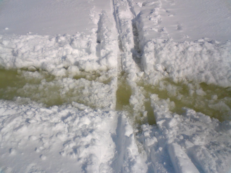 Снег высокий, под ним вода, где-то ее мало, где-то весьма прилично. Бурить стоя на ледянках не удобно