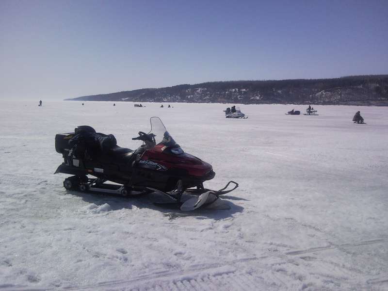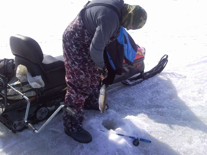 Удивили мужики на снегоходах - стоило отойти в сторонку и вытащить пару судачков,тут как тут-подлетают,пристраиваются.Неужто, имея такую технику,надо гоняться за пешими рыбаками?