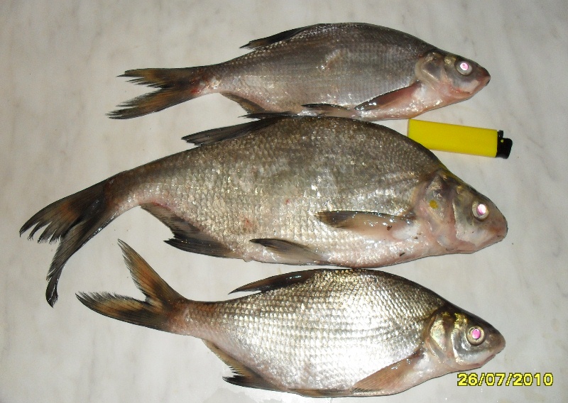 Сначала ужасная жара, потом приятная прохлада. Мелочи вообще небыло. Окуня с ершами и те бонусные попадались. Итого 4 подлещика 300-450гр., 2 лещика кило и полтора, ёрш-монстр