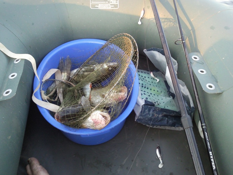 Вчера, район армянского пляжа... Только выехали - попали на котел... Удачно подплыли и заякорились практически по центру котла, практически не распугав рыбу. Как итог - каждый заброс приносил либо жерехе, либо окуня. Выловлен зачетный жерешок на 2кг, окунь самый крупный - 800г. Идиллия продолжалась минут 30, пока не обурили конкуренты, тем самым распугав рыбу((((. Итог на фото: