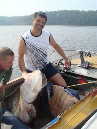 А дайтекась я тоже отчитаюсь! 15.08.10. Галактионово. Сом 75 кг. Помог с выуживанием.