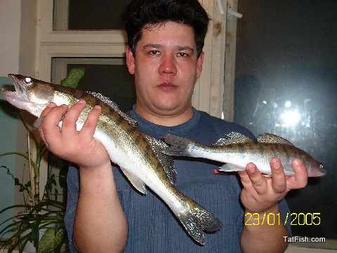 Не смотря на погоду, в субботу 29.01.05 решили съездить с другом опять в Сорочьи Горы. Сразу оговорюсь, что ветра почти не было, поэтому даже при такой низкой температуре на льду чувствовали себя нормально. Приехали еще затемно и вышли на лед в сумерках. Поскольку снега за неделю не было без труда нашел свои старые лунки и отойдя метров на 5-6 просверлился. Закинув первую удочку и став сооружать для нее подставку из снега, заметил движения кивка и через пару секунд уже чувствовал на том конце лески соперника. Честно говоря не ожидал я такого и пока тянул (глубина 13 метров + приличная тяга) все ждал когда вес ослабнет (обычно так идет мелкий берш и судак - первые метры тяжеловато, а потом еле чувствуешь на леске тяжесть), но такого не случилось. Рыба дойдя до лунки уткнулась в лед и пришлось немного повозиться, чтобы ее аккуратно достать. Судак потянул на 1,5 кг. Ну думаю – поперло, не успел закинуть уже вытащил первого приличного судака. Ну и после этого так «поперло», что до 15.00 не увидел практически не одной поклевки, после поимки первой и единственной рыбы можно было спокойно сматываться и ехать домой. Друг за день вытащил пару судачков грамм по 300. Народу практически не было – видать холодно, побоялись. Вот вроде и все….