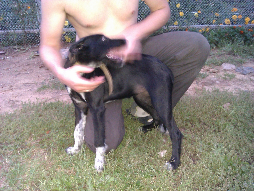 На питбульчика похож. Но правда мордочку плохо видно. И на хвостик бы посмотреть.