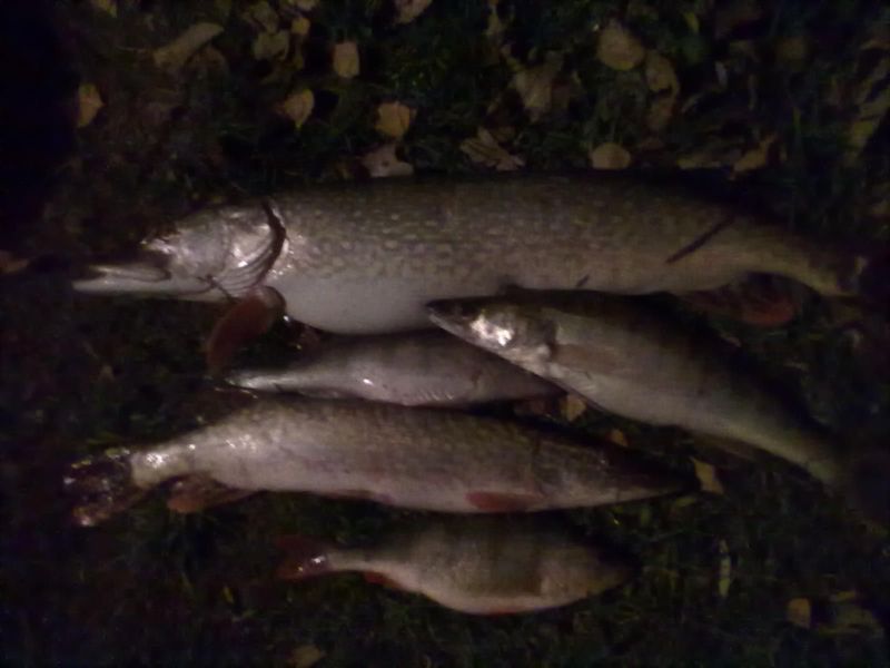 Не буду вдаваться в подробности!Короче на отвес дёргает мелкий бёрш,правда изредка попадаются товарные! На джиг немного щучка,ещё меньше окунь и уж совсем мало судачок!!!Короче мой результат-2 щучки,одна 1,2 кг вторая на 3,1 кг,судачёк на 800 гр,бёрш 400 гр,окунь 400 гр!Ещё несколько недомерков было отпущено... Вот так вот скромненько! Остальные тоже маненько поймали...Походу пора ждать лёда...